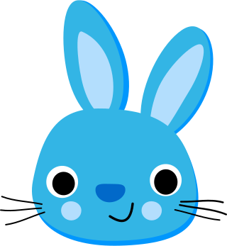 This features a cute and colorful cartoon bunny with blue fur. It has two large, round ears on its head and black whiskers around the mouth area. The bunny's eyes are wide open, giving it an expressive look. This delightful character is likely designed for children or as part of a fun and playful theme.