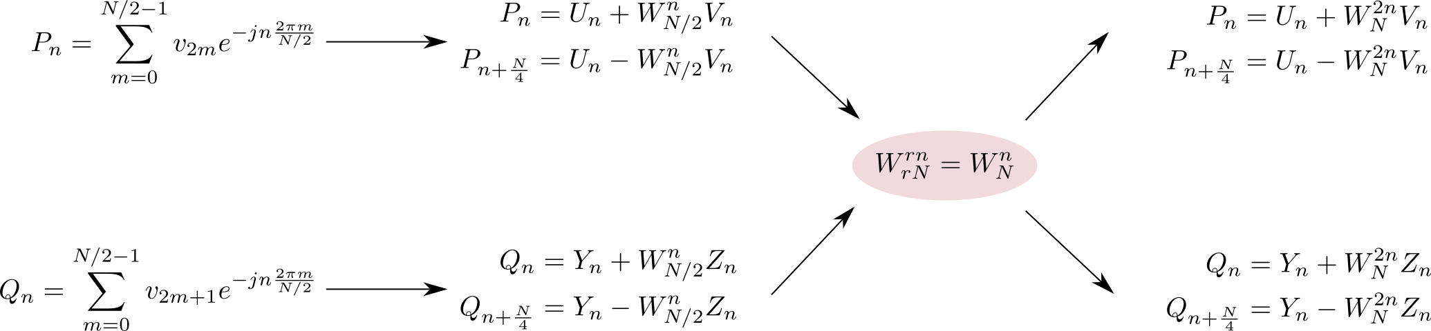This features a complex network of mathematical equations, with one equation in the center being written in a pink oval circle. There are four other equations surrounding this central equation, with two on each side and another one above it. These equations are connected to the central equation by arrows, indicating their relationship within the larger system. The intricate arrangement of these equations suggests that they may be part of a more extensive mathematical problem or concept.