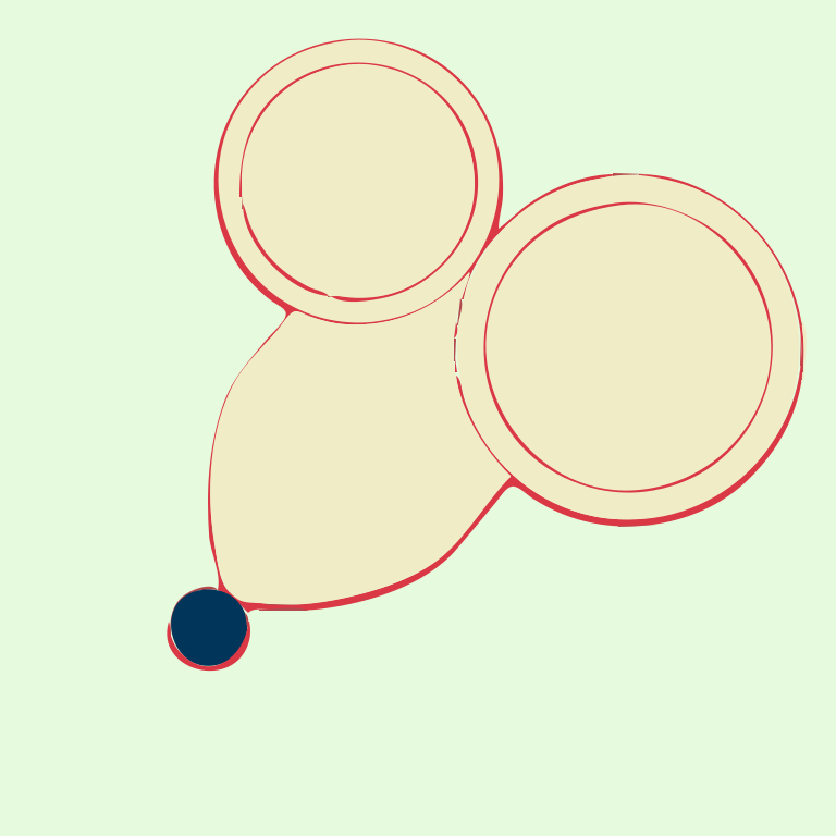 This features a unique and creative representation of two circles, one on top of the other. Each circle is connected by a red line that extends from the center of each circle to their respective edges. This artistic arrangement gives an impression of a mouse or a similar object. The colors used in this design are predominantly shades of brown and red, creating a visually appealing composition.