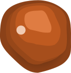 This features a close-up of an orange, round object with a small blemish in the center. It appears to be a brown nut or a piece of fruit, possibly a peach or a plum. The color of the object is predominantly orange, but there are some brown and yellow hues visible as well. The blemish on the surface adds an interesting detail to the otherwise smooth and shiny appearance of the object.
