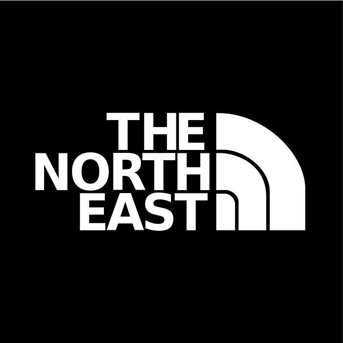 This is a black background with white text that reads "The North East." This design could be used as a sticker or background for those from the North East of England, or anyone who is proud to represent their region. The simple and bold design makes it an eye-catching statement piece.