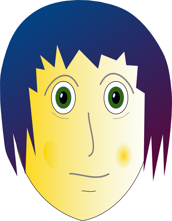 This features a cartoon-like face with a blue and yellow color scheme. The face is drawn in a very simple style, making it appear like a passport photo. The eyes are large and round, giving the impression of being wide open. The nose is small and positioned towards the center of the face, while the mouth is located slightly below the center. The overall appearance of the image gives off a playful and fun vibe.