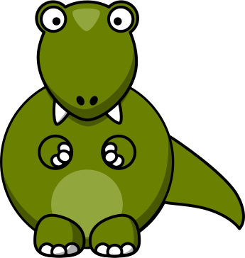 This features a cartoon green dinosaur, specifically a T-Rex, sitting down with its legs crossed. It has a large body and is holding onto something in its hands. The T-Rex appears to be smiling as it sits on the ground. This whimsical illustration showcases the playful nature of cartoon characters and their ability to bring joy to viewers.