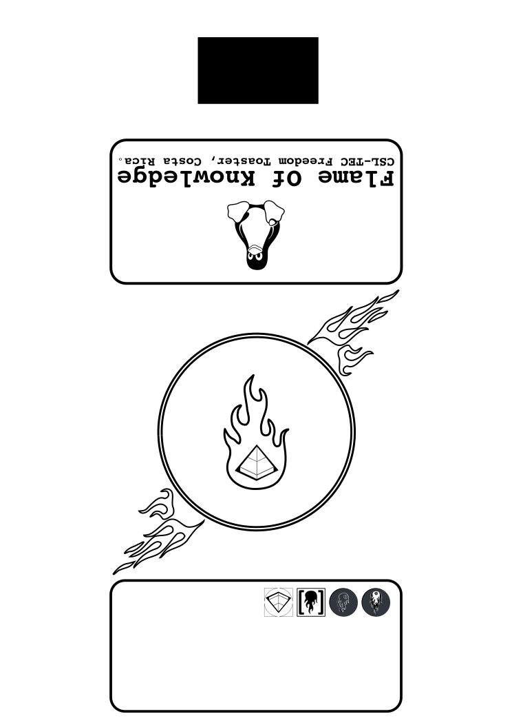 This features a card with a circle design on it, which has a fire inside. The circle is surrounded by several rectangular boxes filled with text and icons. In the center of the circle, there is an illustration of a flame, adding to the overall theme of the card. This unique design makes for an interesting visual experience.