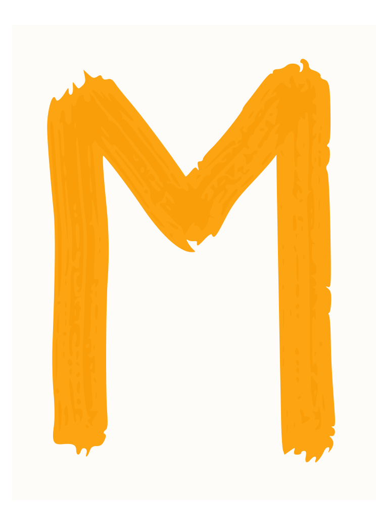 This features a large, bold letter M in yellow. It is the main focus of the picture and stands out against the background. The letter appears to be hand-drawn or painted, giving it an artistic and unique appearance. The color of the letter is bright and vibrant, making it easily noticeable and eye-catching.