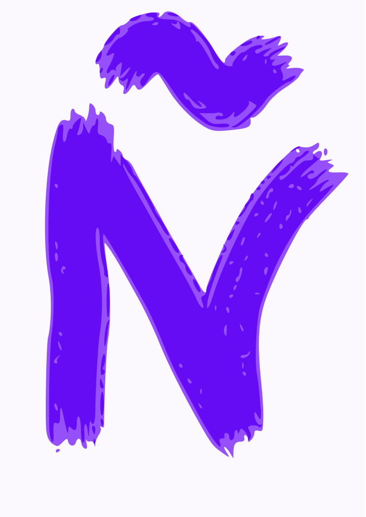 This features a purple drawing of the letter N, which is written in cursive. The letter appears to be hand-drawn and has a unique style compared to traditional print or cursive writing. The color of the letter is predominantly purple with some shades of blue, giving it an artistic appearance. This creative representation of the letter N can evoke feelings of playfulness and individuality in its presentation.