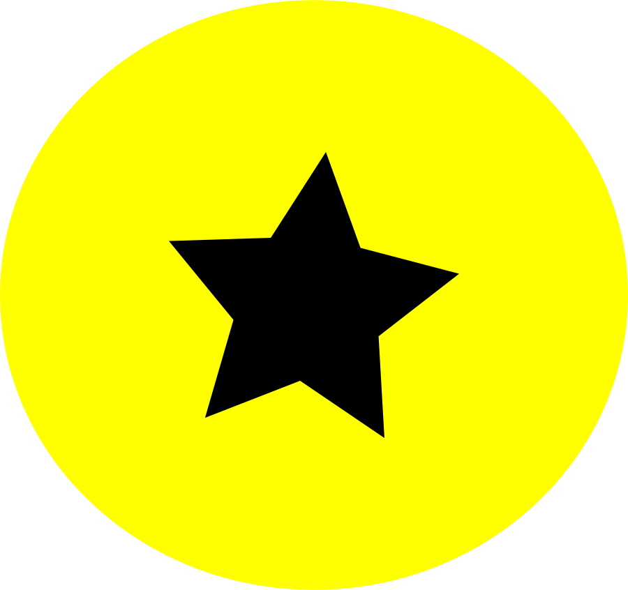 This features a yellow circle with a black star in the center. The star is prominently displayed, taking up a significant portion of the circle's surface area. The combination of the yellow background and the contrasting black star creates an eye-catching visual effect that draws attention to the design. This could be used as a logo or symbol for various purposes, such as representing a company or organization, or simply as an artistic element in a creative project.