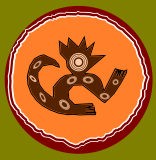 This features a unique and intricate design of an animal, possibly a cat or a dog. It is depicted in orange and brown colors with oval circles on its body. The animal's shape is circular, giving it a distinctive appearance. This artistic piece could be used as a decorative item or even as a logo for a company or organization. The design showcases creativity and attention to detail, making it an eye-catching element in any setting.