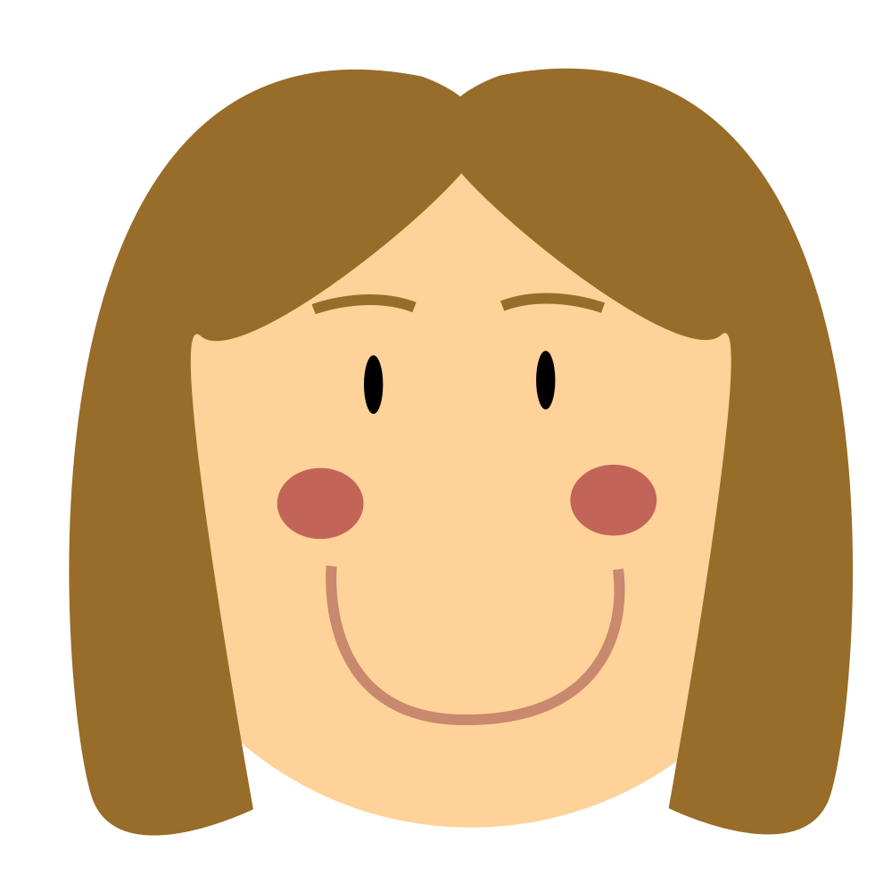 This features a smiling cartoon face of a woman with brown hair. She has pink cheeks and is wearing a smile that appears to be genuine, making her look happy and approachable. Her eyes are closed, adding to the warmth of her expression. The overall appearance of the woman in the cartoon image gives off a friendly vibe, which could be associated with education or children's content.