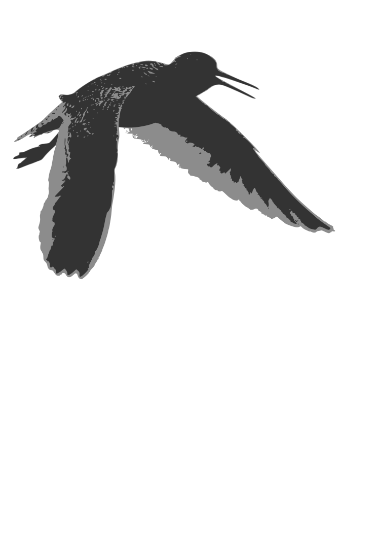 This features a black and white bird flying in the air. It appears to be a silhouette of the bird, with its wings spread wide as it soars through the sky. The bird's position is slightly off-center, giving the impression that it is in motion. The contrast between the bird's outline and the background creates an interesting visual effect, emphasizing the bird's shape against the white backdrop.