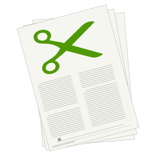 This features a stack of papers with scissors on top. There are three sets of papers, each with one set having the scissors placed on top. The scissors are green and appear to be made from plastic. The papers themselves are white in color and seem to be related to some kind of project or work.