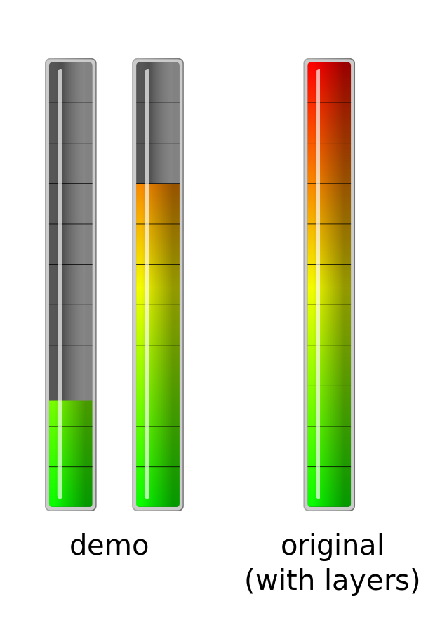 This features three green and red bars, each with a different shade of color. These bars are labeled as "demo" and "original," indicating that they represent two different versions or states of the same object. The original bar is on the left side, while the demo bar is on the right side. Each bar has a slightly different shade of green, with the original bar being more vibrant than the demo bar. This visual representation may be used to compare and contrast the two different versions or states of an object.