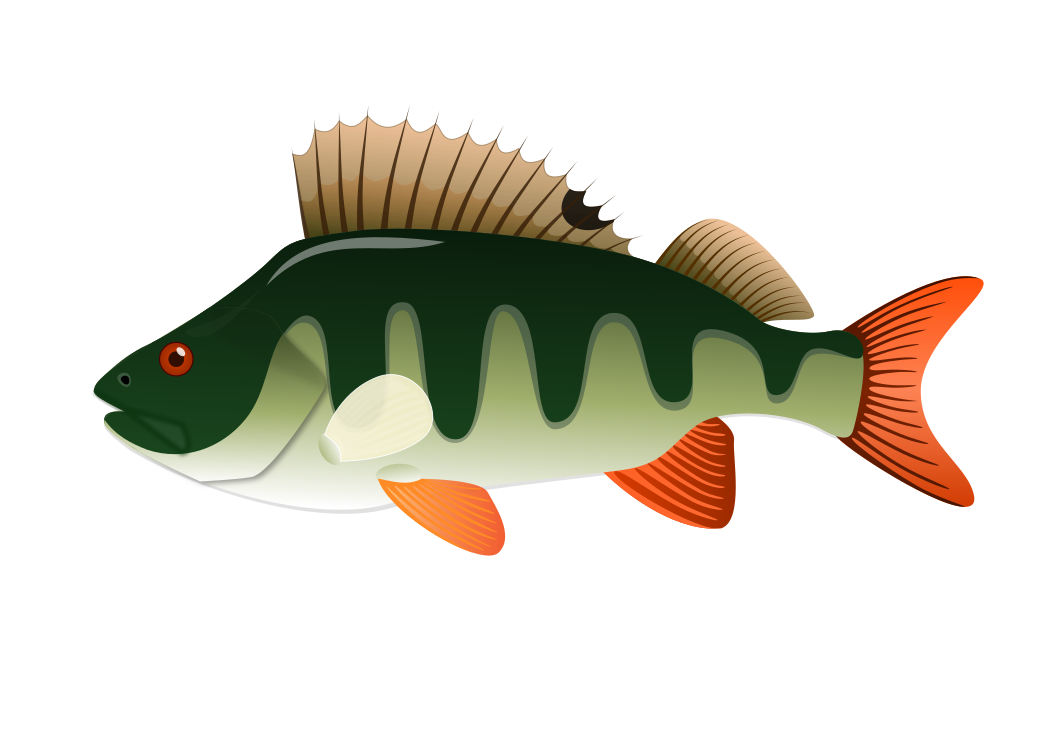 This features a large, colorful fish with an orange tail and fins. It is a cartoon-like representation of a perch fish, which has green scales and five fins. The fish appears to be flying through the air, giving it a dynamic and lively appearance. Its vibrant colors and unique design make it stand out against its surroundings, creating an eye-catching visual experience for viewers.