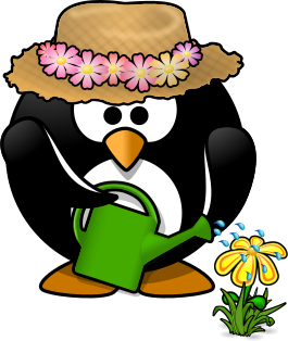 Tags: animal, bird, farm, farmer, flower, garden, gardening, hat, hobby, nature, penguin, tux, water, watering, watering can, watering pot