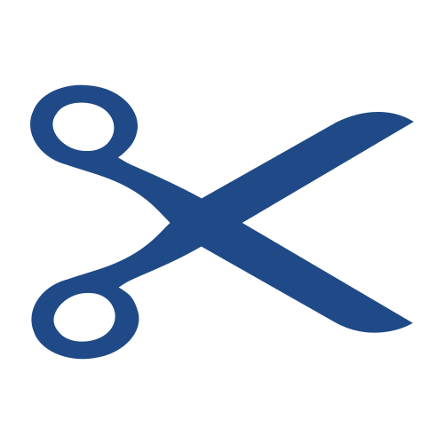 This features a blue and white pair of scissors, with the blades open. The scissors are prominently displayed in the center of the image, taking up most of the space. The design is simple yet effective, making it an ideal representation of a pair of scissors. This iconic symbol can be used to represent various concepts related to cutting or crafting, such as art and design projects, sewing, or even office supplies.