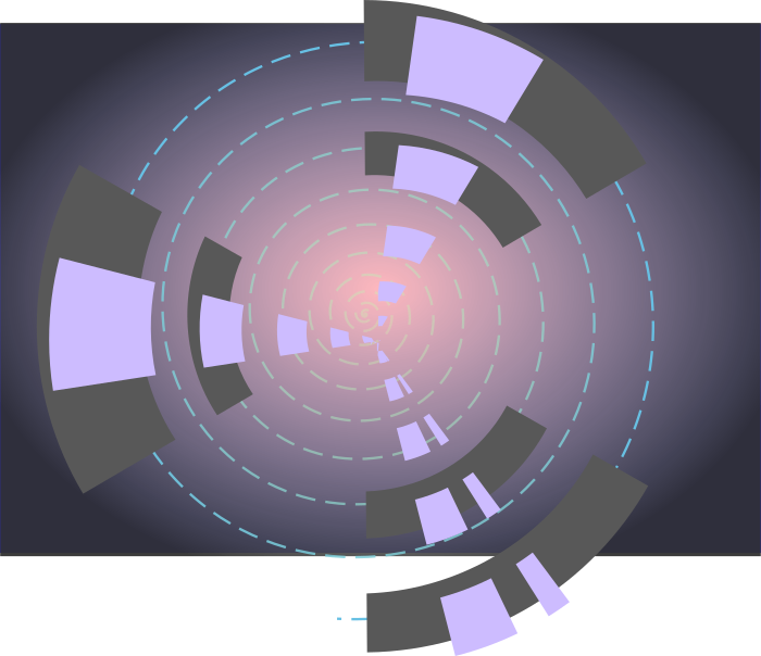 This features a circular pattern with multiple lines and rectangles. These elements are arranged in such a way that they create an intricate, interconnected design. The lines vary in color, including blue, purple, black, and white, while the rectangles have a mix of colors as well, such as black, purple, and white. This visually striking pattern is reminiscent of a vortex or a complex network, with each element contributing to the overall composition. The image's unique design makes it an interesting focal point for viewers who appreciate intricate patterns and artistic arrangements.
