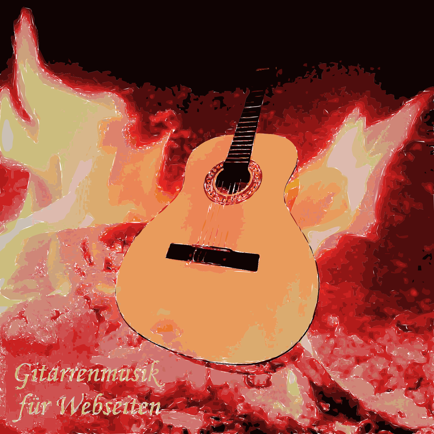 This features a guitar sitting on top of a fire, with the flames surrounding it. The guitar is placed in the center of the scene and appears to be the main focus of the image. The fire creates an intense atmosphere around the guitar, making it stand out as the central element of the picture.