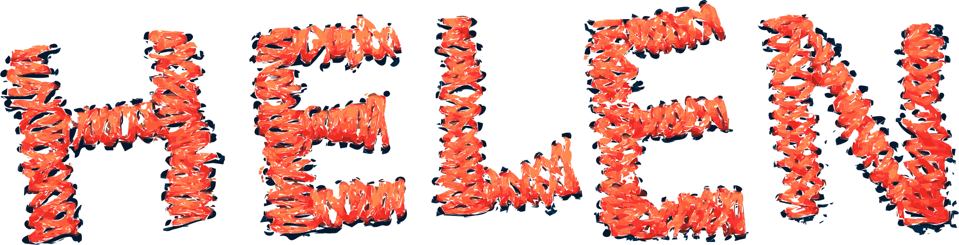 This is a close-up of the word "Helen" written in orange letters. The letters are arranged in a way that makes it look like they are made out of candy, giving the impression of a playful and fun design. The color scheme of the letters is predominantly orange, with some red accents on certain letters. This creative presentation of the word "Helen" adds an artistic touch to the image.