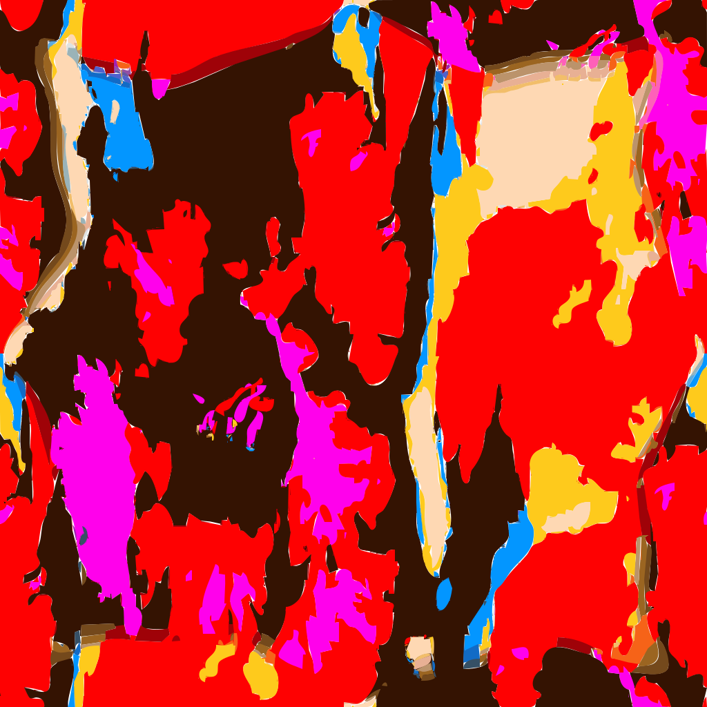 This features a vibrant and colorful pattern, likely created using a computer program. It consists of various shades of red, pink, yellow, blue, and brown, creating an eye-catching design. The pattern is reminiscent of a painting or a piece of artwork, with the colors blending together to create a visually appealing composition. This unique pattern could be used for various purposes such as wallpaper, fabric, or even as part of a digital art project.