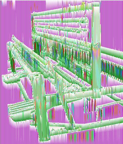 This is a close-up of an abstract, colorful fabric loom. It features many lines that are both grey and rainbow colored, creating a visually striking pattern. Despite the distortion in the image, it's clear that this is indeed a fabric loom. The shape of the loom itself isn't very prominent, but its presence adds an interesting element to the overall composition of the picture.