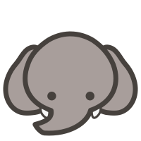 This features a cute cartoon elephant with big ears and a trunk. It has two tusks, one on each side of its mouth, giving it a playful appearance. The elephant's eyes are black, adding to the character's charm. The overall design is simple yet appealing, making it an attractive image for various purposes such as children's books or educational materials.