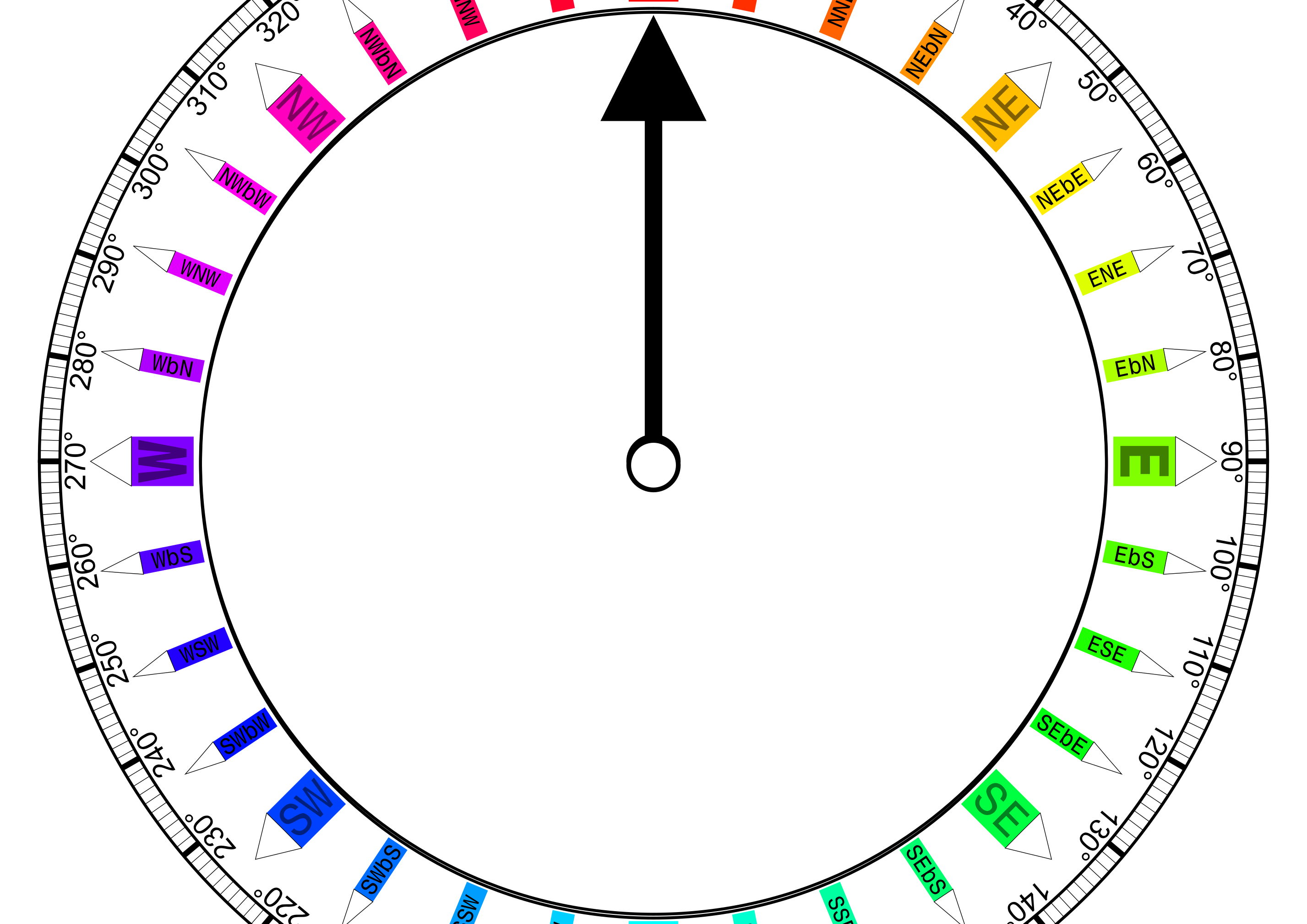This features a large clock with a colorful face, displaying the time in various colors. The clock has a unique design that includes a compass card on its face, which is an interesting and creative addition to the timepiece. The compass card consists of 32 named compass directions, making it both functional and visually appealing. The clock's face is filled with colorful numbers and letters, adding a vibrant touch to the overall design.