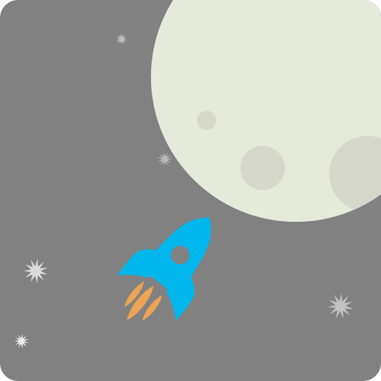 This features a small blue rocket flying towards the moon, with a large gray moon in the background. The rocket is positioned on the left side of the scene and appears to be heading towards the moon's surface. In addition to the main subject, there are several stars scattered throughout the sky, adding depth and detail to the image.