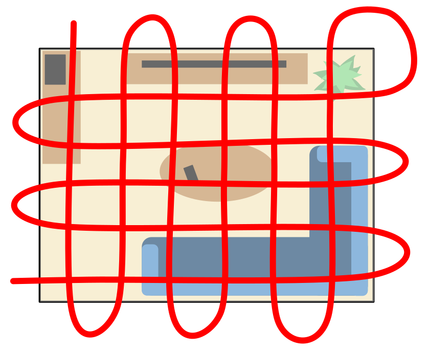 This features a blue couch with a red line drawn around it, creating an interesting visual effect. The couch is placed in the center of the scene and appears to be the main focus of the image. Surrounding the couch are several chairs, some of which have red lines drawn around them as well. These chairs are positioned at various angles and distances from the couch, creating a sense of depth and dimension within the scene. The combination of the blue couch and the red lines adds an artistic touch to the image, making it visually appealing and engaging for viewers.