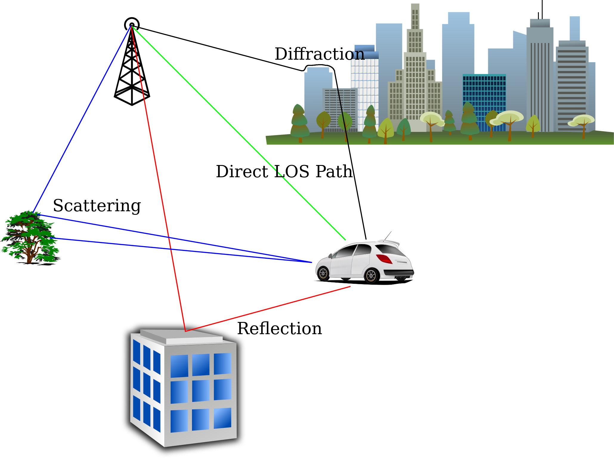 Tags: scattering, direct los path, reflection, propagation multipath