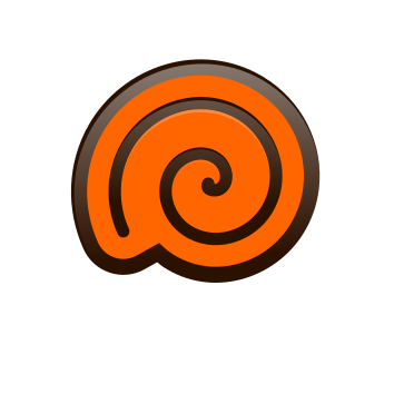 This features a small, round orange object with a spiral design on it. The spiral is black and appears to be the central focus of the image. The overall appearance of the object gives off an impression of a snail shell, but its color and design make it stand out as unique compared to typical snail shells.