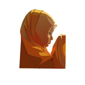 This features a young child wearing an orange robe, with its head bowed in prayer. The child appears to be focused and engaged in their prayers, possibly seeking guidance or solace from the divine. The scene is depicted in a vibrant color palette, giving it a warm and inviting atmosphere. The child's posture suggests that they are deeply immersed in their thoughts and emotions during this moment of reflection.