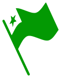 This features a green flag with a white star on it. The flag is waving in the wind, giving it an animated appearance. The green color of the flag stands out against the background, making it easily noticeable. The white star adds a touch of elegance to the overall design of the flag.
