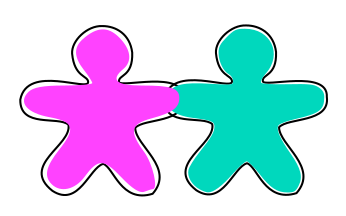 This features two cartoon-like figures, each with a different color. One figure is pink and the other one is blue. They are standing next to each other, appearing as if they are holding hands or hugging. These figures could be interpreted as gingerbread men or simply cute characters. The overall scene gives off a warm and friendly vibe, with the two figures seemingly enjoying their time together.