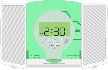 This features a digital clock radio with a green display, which is set to 2:19. The clock has a white face and is placed on top of an RCA CD player. The clock radio also functions as a radio, providing entertainment options for the user. The device appears to be in good condition and ready for use.