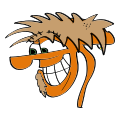 This features a cartoon character with a big smile on its face. This character is wearing an orange shirt and has a distinctive appearance, making it stand out in the scene. The character's mouth is wide open, showing off its teeth as it smiles brightly. The overall effect of this character is one of happiness and friendliness, likely intended to entertain or amuse viewers.