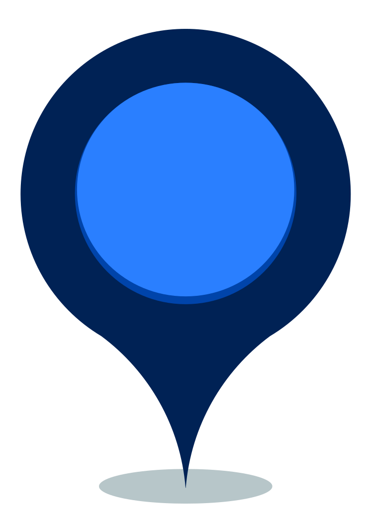 This features a blue circle with a black background, which is an illustration of a map pin. This type of design is commonly associated with Google Maps or Here Maps. The blue circle has a slightly rounded shape and appears to be the main focus of the image. The contrasting colors of the blue circle against the black background create a visually appealing composition that highlights the map pin's prominence in the scene.