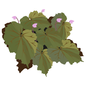 This features a beautiful arrangement of various plants, including leaves and flowers. There are several green leaves scattered throughout the scene, with some appearing to be in the foreground while others are further back. Among these leaves, there is an assortment of pink flowers that add a touch of color to the overall composition. The combination of the greenery and the delicate pink flowers creates a visually appealing and harmonious scene.