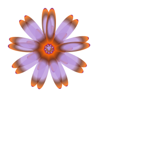 This features a close-up of an orange and purple flower with a red center. The flower is positioned in the upper left corner of the picture, taking up most of the frame. The vibrant colors of the flower create a striking contrast against the white background. This beautiful floral arrangement serves as the main focus of the image, drawing attention to its unique and eye-catching appearance.