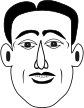 This is a black and white drawing of a man's face. He has a big nose, which is one of the most prominent features in the drawing. His mouth is open, showing his teeth, and he appears to be smiling. The man's eyes are closed, giving him a playful expression. The drawing captures the essence of a happy-go-lucky individual with a charming smile.