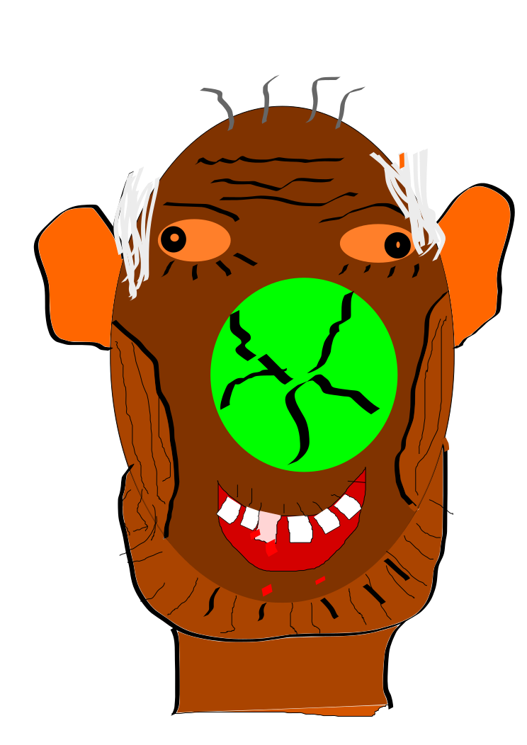 This features a creative and whimsical drawing of an old man with a green nose. This unique character has a big smile on his face, giving the impression that he is enjoying himself. The artwork is colorful and detailed, showcasing the artist's skill in creating a visually appealing piece. The image captures the viewer's attention and invites them to appreciate the creativity behind this imaginative character design.