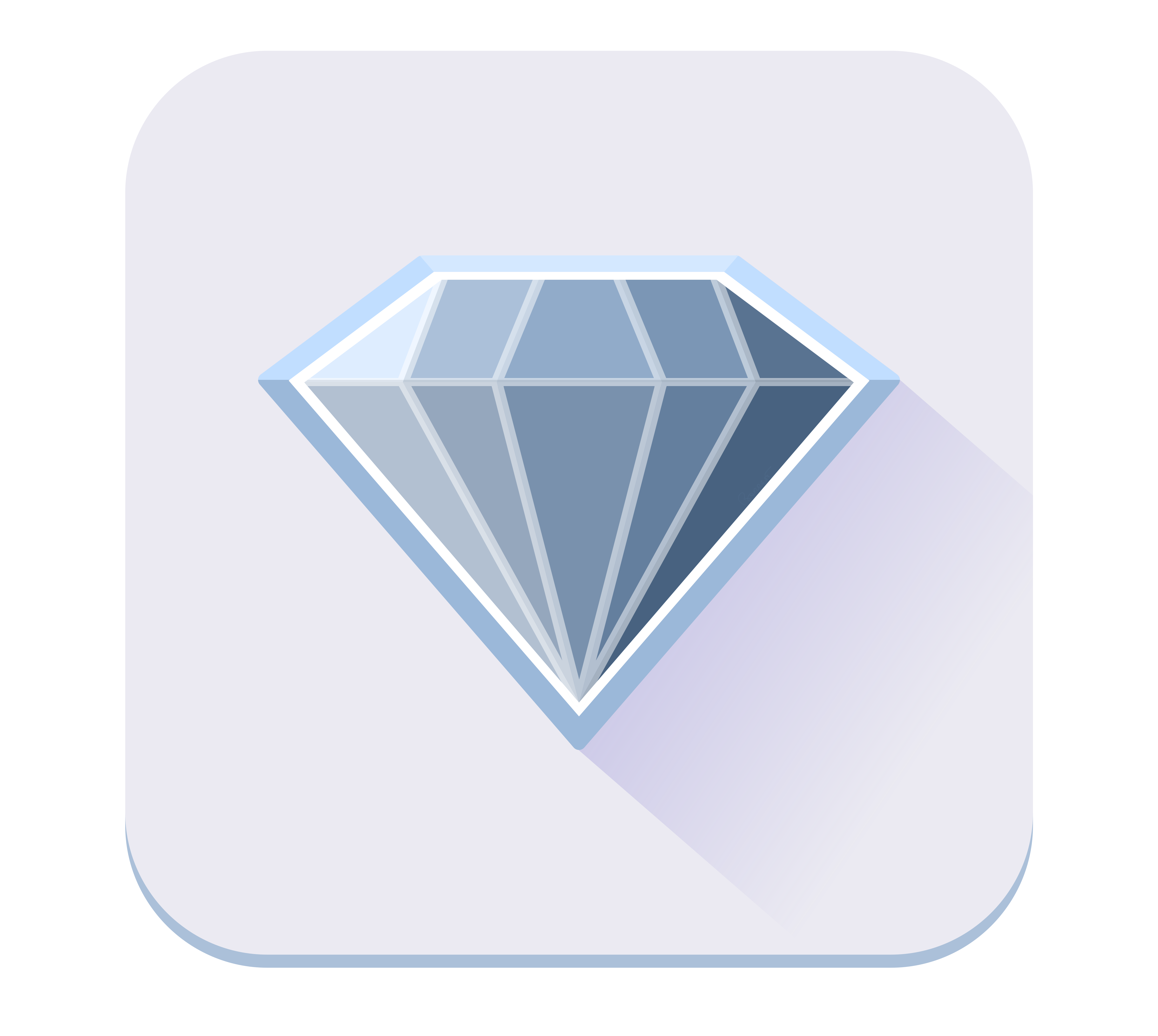 This features a square, white icon with a diamond in the center. The diamond is depicted in various shades of gray, giving it an elegant and sophisticated appearance. The shadow of the diamond can be seen on the right side of the shape, adding depth to the design. This icon could represent a symbol or logo for a company or product related to jewelry or luxury items.