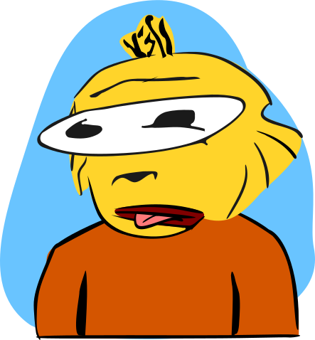 This features a cartoon character with an exaggerated expression, making it appear as if the character is pulling its tongue out. This whimsical drawing captures attention and adds humor to the scene. The character's facial expression is quite unique, giving it a distinctive look that sets it apart from other illustrations. Overall, this creative piece of artwork showcases an imaginative approach to storytelling through visual means.