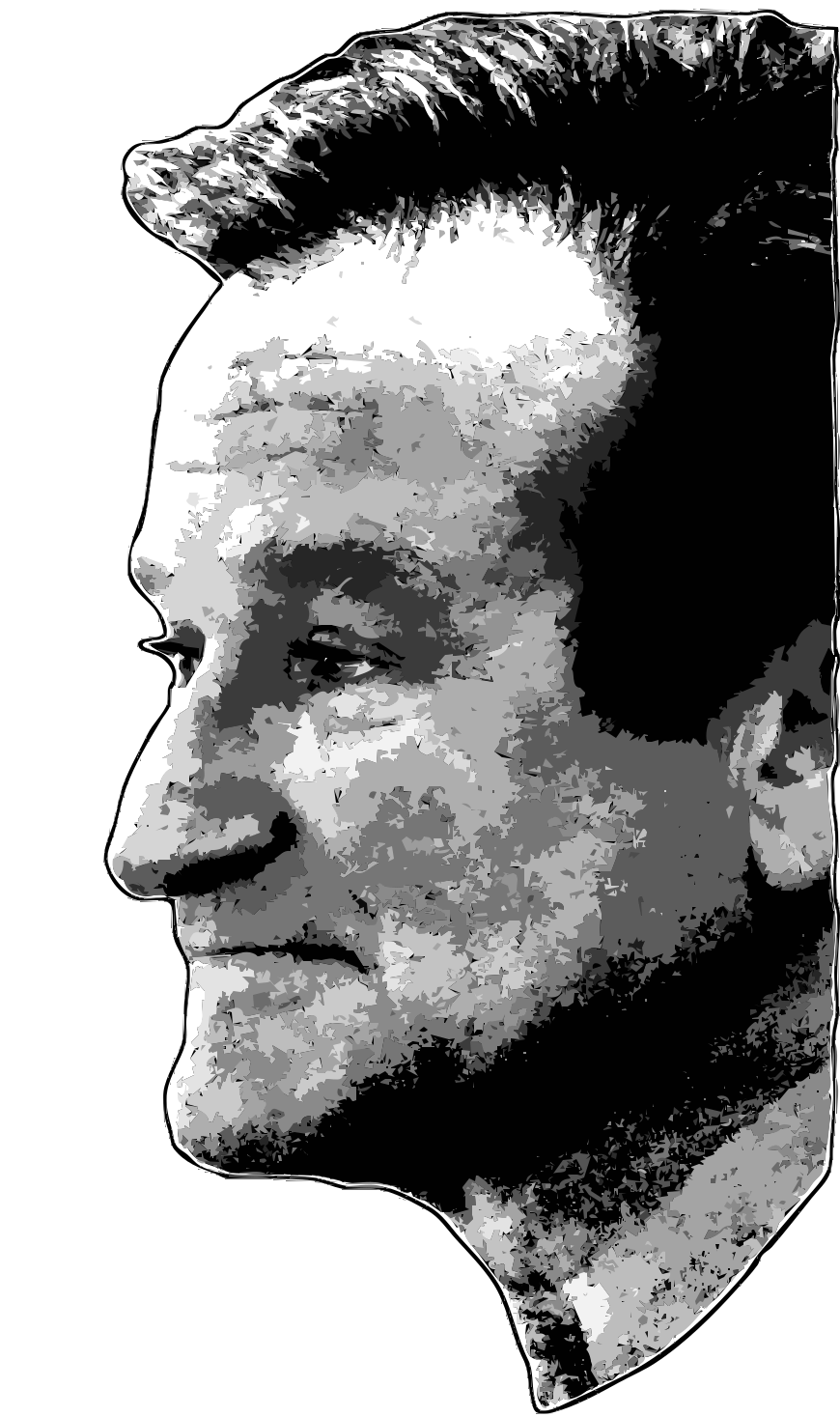 This features a black and white drawing of a man with a prominent nose, giving him the appearance of being a cartoon character. He is looking directly at the camera, capturing attention with his piercing gaze. The man's facial expression appears to be serious or contemplative, adding depth to the drawing. The artwork showcases the artist's skill in creating a detailed and engaging portrait of this individual.