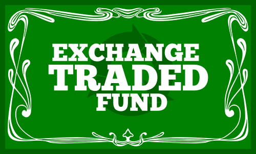 This features a green sign with white lettering that reads "Exchange Traded Fund." This sign is likely promoting an investment opportunity or providing information about the fund. The use of a green background and white text creates a visually appealing presentation, drawing attention to the message being conveyed.