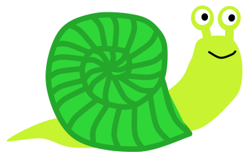 This features a cartoon snail with a big smile on its face. It is depicted in a green and yellow color scheme, giving it a cheerful appearance. The snail has spiral shells that are visible all around its body, adding to the playful nature of the character. Its large eyes and mouth make it look friendly and approachable. This cartoon snail could be used as an illustration for children's books or educational materials, as well as in a fun and lighthearted context.