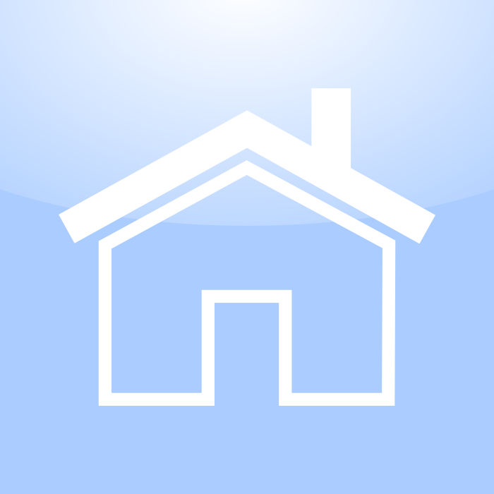 This features a white house with a blue background. It is depicted as a square symbol, which gives it a clean and modern appearance. The house has a pointed roof, giving it a classic look. The overall design of the house symbol is simple yet elegant, making it an attractive representation of a home.