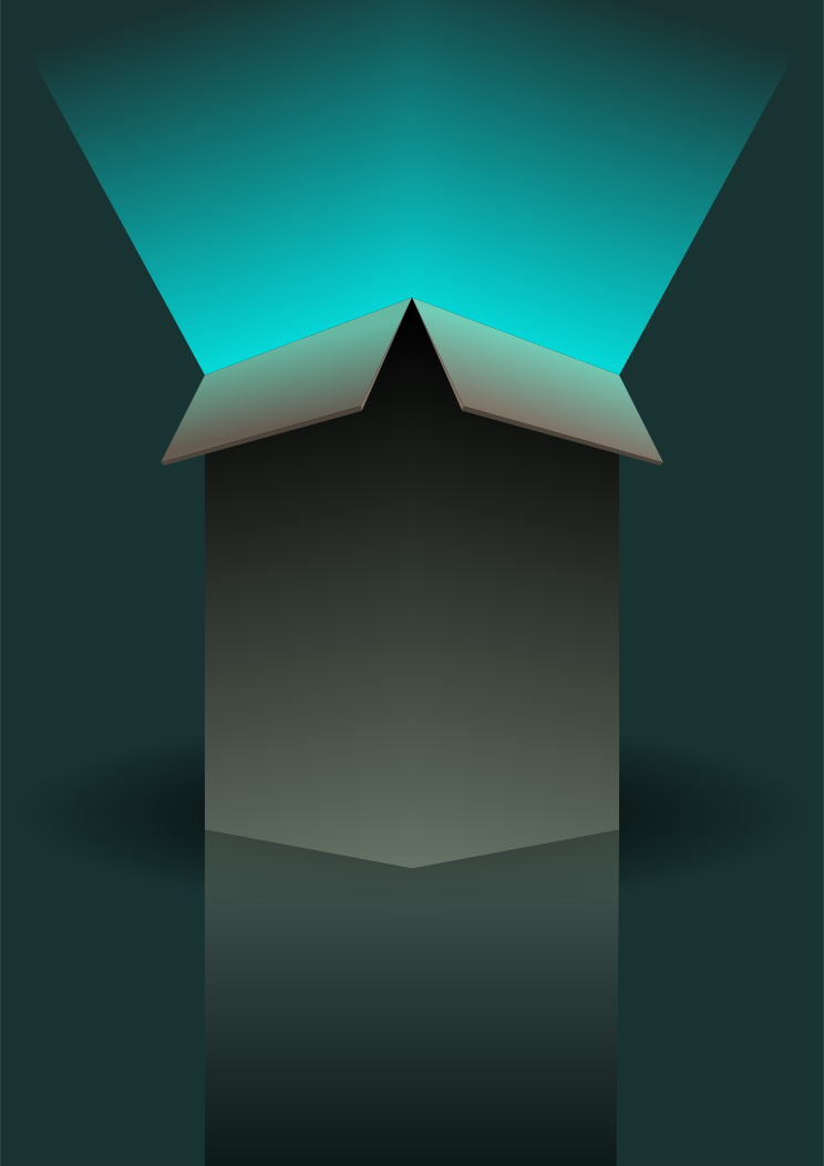 This features a unique and intriguing scene of a cardboard box with a teal beam of light coming out of it. This creative design gives the impression that the box is floating in mid-air, creating an interesting visual effect. The color palette of the image consists mainly of shades of blue, which adds to the overall atmosphere and mood of the scene.