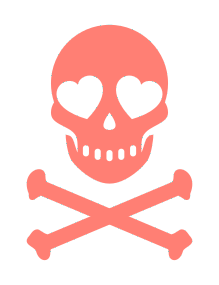 This features a skull and bones graphic, which is an iconic symbol often associated with pirates. The skull has hearts drawn on it, adding a touch of love to the otherwise ominous design. This unique combination of elements creates a visually striking and memorable image that can be used in various contexts, such as clothing or decorative items.