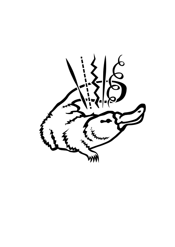 This features a black and white drawing of a platypus, an animal known for its unique appearance. It is depicted in mid-air with its mouth open, giving the impression that it is flying or jumping. The drawing showcases the platypus's distinctive features such as its beaver tail, duck bill, and webbed feet. The image captures a moment of motion and curiosity, making it an interesting visual representation of this fascinating creature.