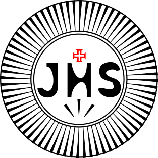 This features a round logo with the letters "JHS" in black. Above these letters, there is a small red cross, which adds an element of religious symbolism to the design. The logo has a black outline, giving it a clean and professional appearance. This logo could be associated with a company or organization that uses this acronym as part of their branding.